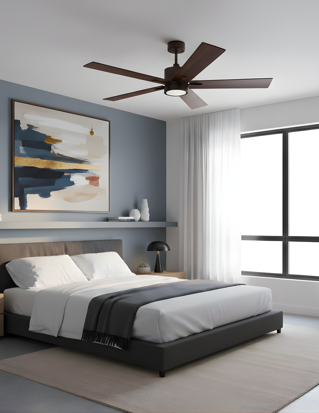 Our 5-blade Cylinder Ceiling Fan offers optimal airflow and cooling efficiency, perfect for any room in your home or office. The sleek design features a brushed nickel finish with Oak/walnut, adding a stylish touch to your décor. This ceiling fan is the perfect choice for modern living spaces seeking both style and comfort.