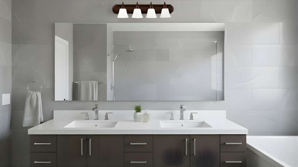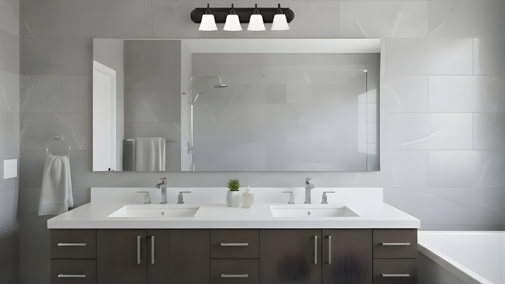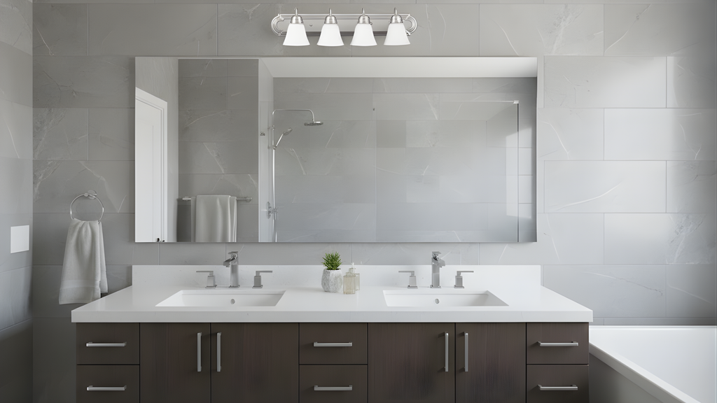 Enhance your bathroom with the Laredo 4-Light Vanity Sconce, featuring elegant white glass shades that beautifully diffuse light for a warm and inviting ambiance. With its stylish arm design, this sconce is available in both brushed nickel and matte black finishes, allowing you to customize your look. Perfect for installation above mirrors or sinks, the Laredo sconce seamlessly blends modern sophistication with practicality, providing ample illumination while elevating your space’s décor.